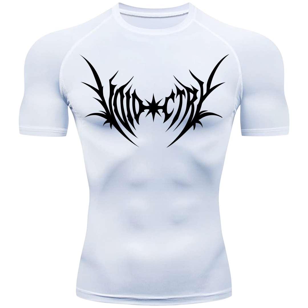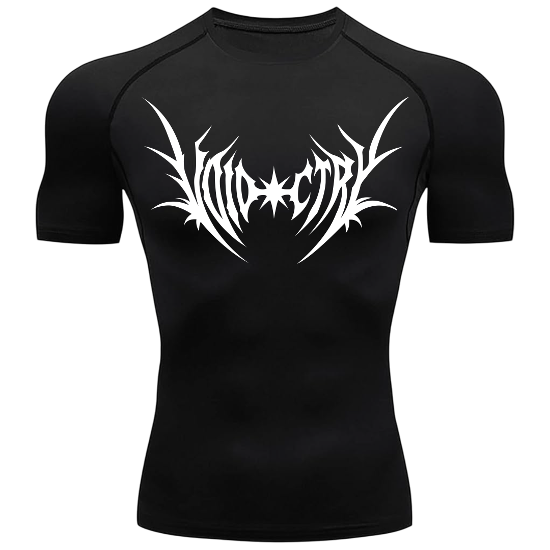 Our high-quality compression shirt combines performance functionality with a bold, gothic-inspired design. Made from a premium polyester-spandex blend, it offers a snug, athletic fit with moisture-wicking, 4-way stretch fabric ideal for intense training. The front proudly features our signature "VOIDCTRL" logo, rendered in a gothic-metal aesthetic that represents the core of our brand. With reinforced seams and breathable construction, this shirt delivers both style and support for high-intensity activity.